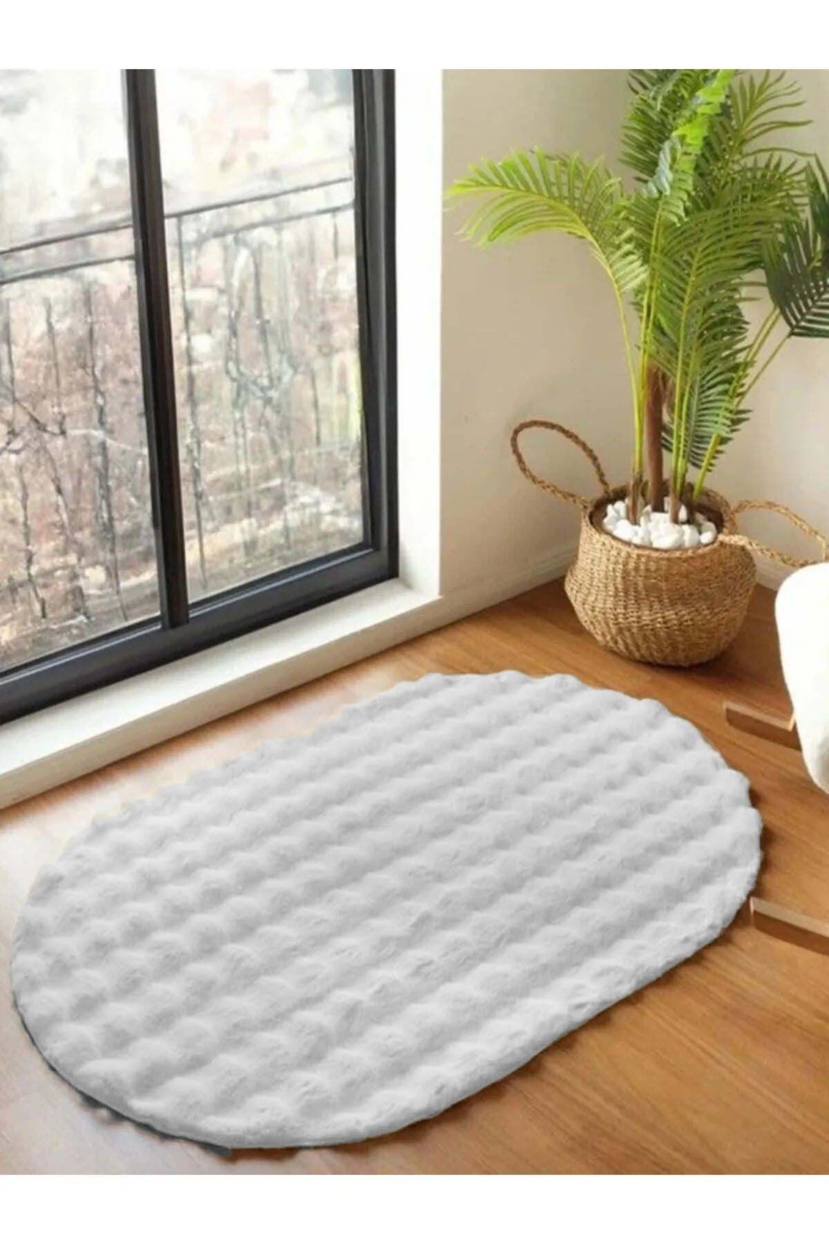Beyaz Yumuşak Bubble Kaymaz Özel Taban Oval Peluş Halı Yolluk